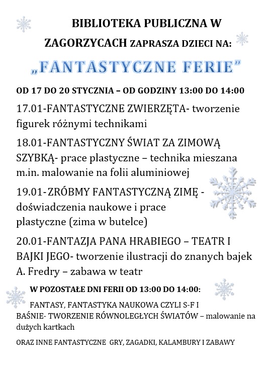 Podczas ferii zimowych nasza biblioteka organizowała zajęcia dla dzieci.