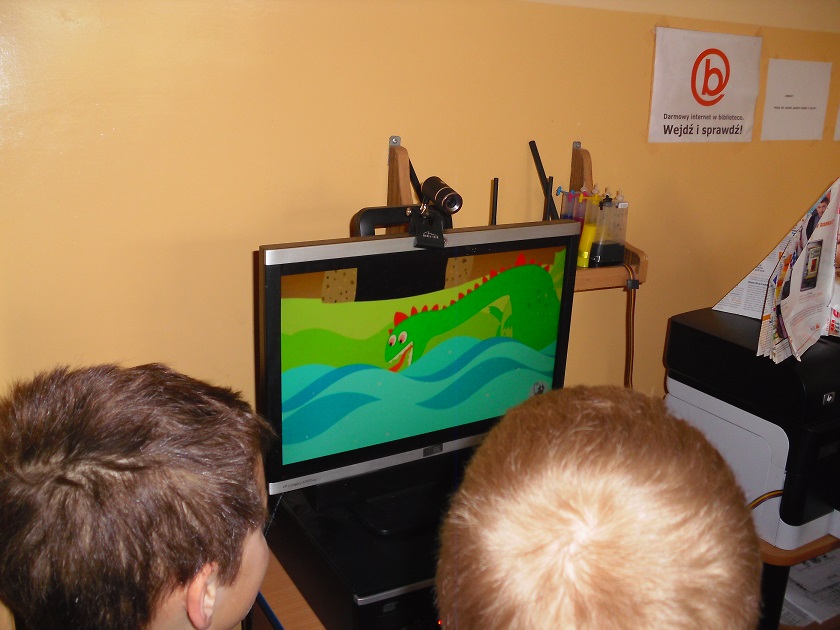 Co prawda były to zimowe ferie, ale w nieco innej, wiosennej scenerii. Dzieci spędzały je w bibliotece chętnie, szczególnie w drugi i trzeci dzień planowanych zajęć. Chłopcy grali na komputerach, a dziewczynki wycinały kolorowe, walentynkowe serduszka, zdobiły maski karnawałowe. Zostały również wykonane piękne, wiosenne kwiaty.