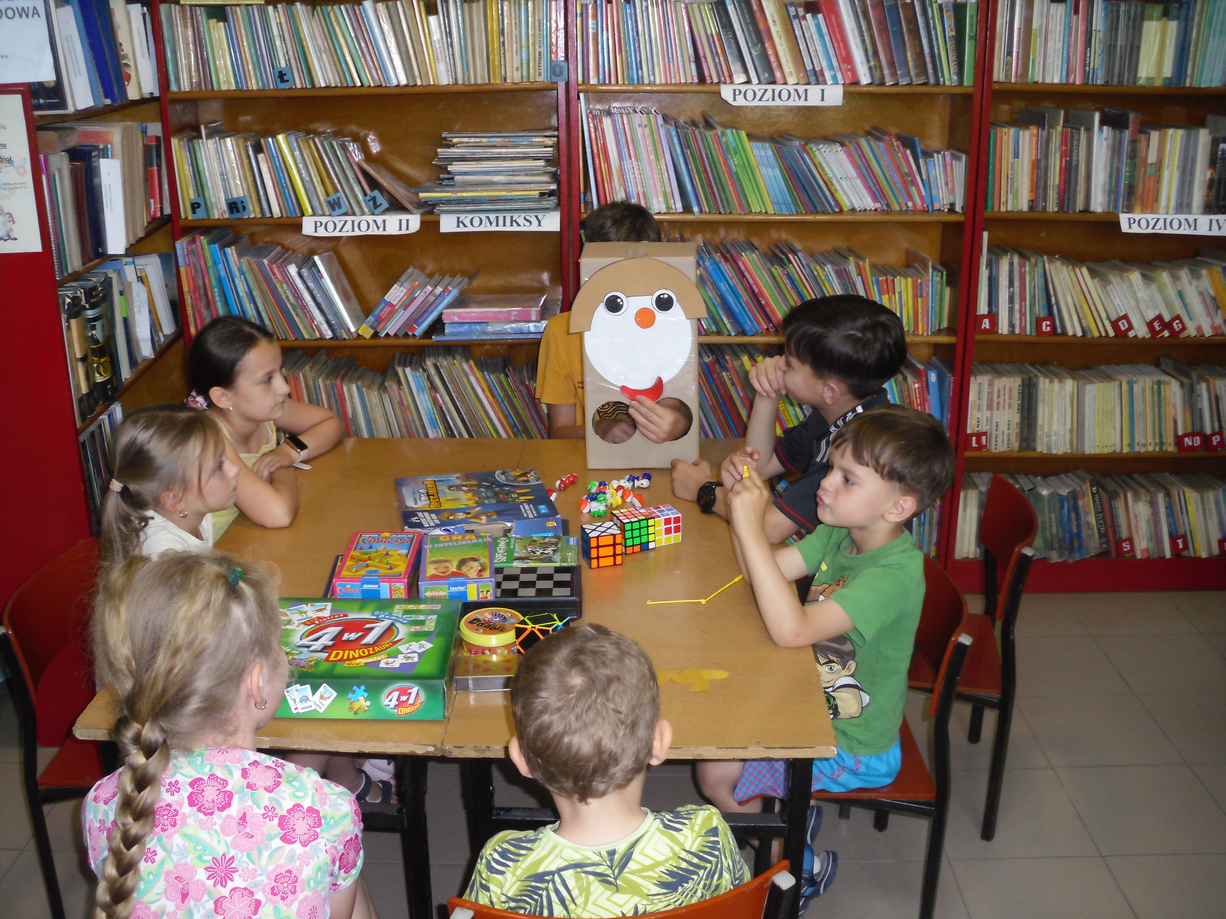 Wakacyjne zajęcia w bibliotece po raz kolejny potwierdziły, że Biblioteka nie jest cichym i nudnym miejscem. W sierpniu i przez cały rok czekają na dzieci w bibliotece książki, Internet, gry planszowe, puzzle, zabawki edukacyjne i malowanki.
