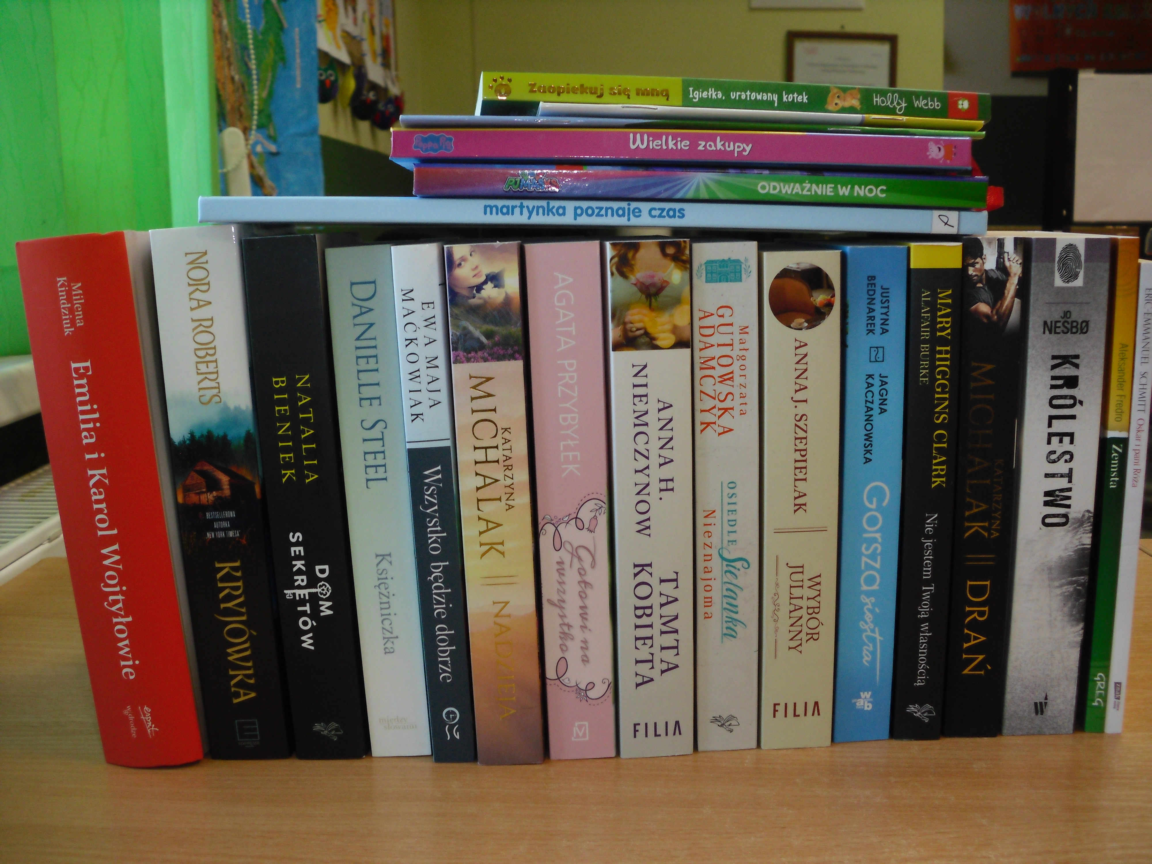 Wśród nowo zakupionych książek znalazły się piękne i kolorowe bajki dla naszych najmłodszych czytelników oraz lektur dla dzieci i młodzieży. Natomiast dorosłym czytelnikom polecamy powieści obyczajowe, sensacyjne i wojenne zarówno polskich, jak i zagranicznych autorów.