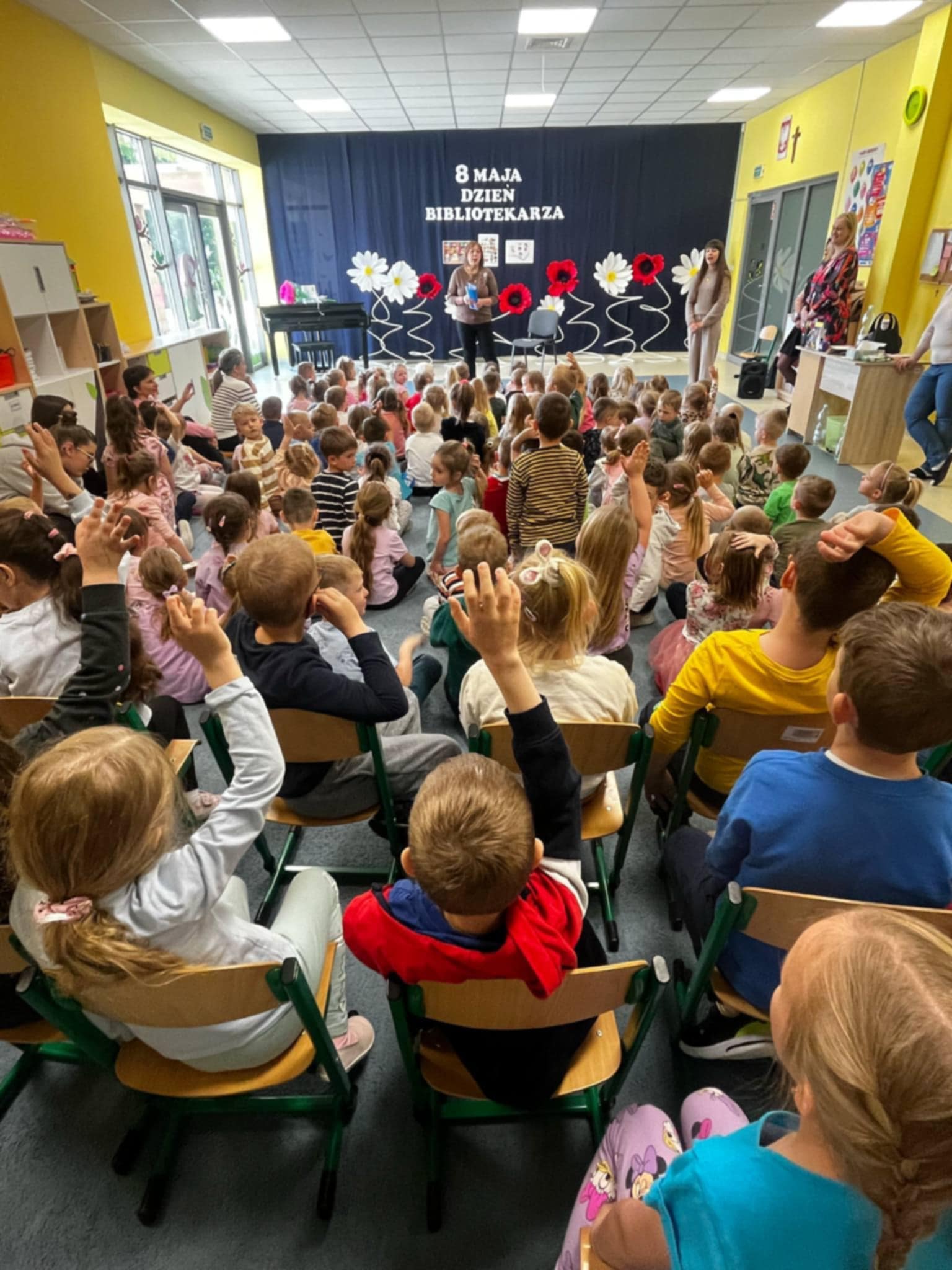 8 maja 2025r. w przedszkolu obchodzony był Dzień Bibliotekarza. Z tej okazji do przedszkola została zaproszona Pani bibliotekarka z Biblioteki Publicznej w Górze Ropczyckiej. Była to okazja by opowiedzieć dzieciom o bibliotece, pracy bibliotekarza, książkach, zasadach wypożyczania i o innych aktywnościach, w których można uczestniczyć przychodząc do biblioteki. Dzieciom została przeczytana bajka Anity Głowińskiej pt. ,,Kicia Kocia w bibliotece" przedstawiająca w przystępny sposób miejsce, którym jest biblioteka.