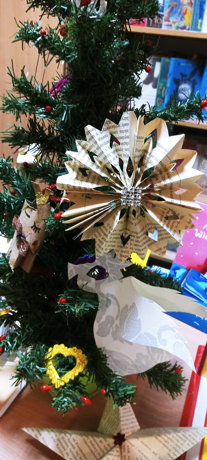 Tym razem, nie było określonej godziny zajęć, dlatego dzieci, które odwiedzały bibliotekę w dniach przedświątecznych, miały możliwość nauczenia się, jak wyciąć gwiazdkę lub wykonać inną zabawkę choinkową.