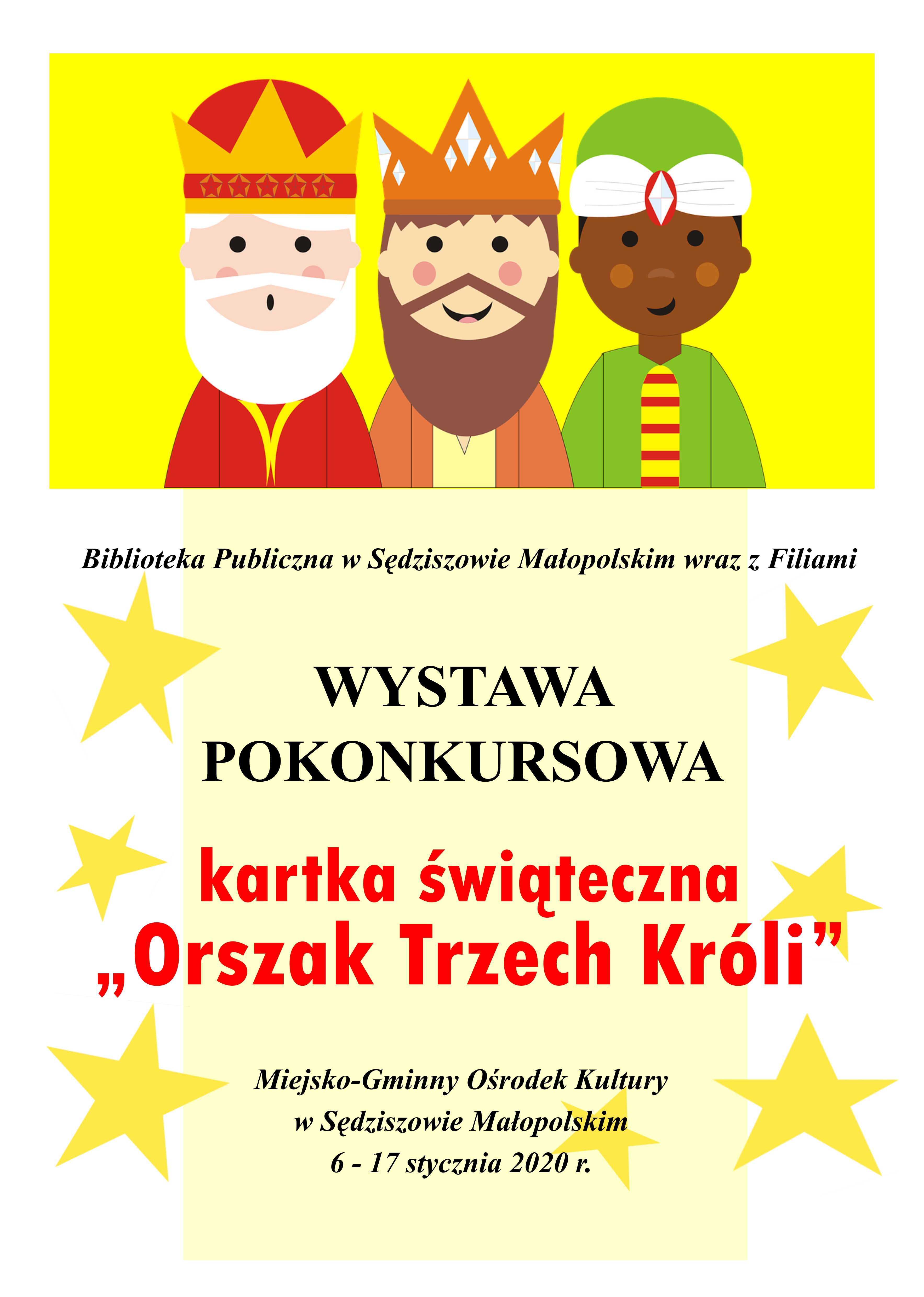 31 stycznia 2020 w Miejsko – Gminnym Ośrodku Kultury w Sędziszowie Małopolskim odbyła się uroczysta gala, podczas której wręczano nagrody uczestnikom konkursu „Orszak Trzech Króli. Trzej Królowie w Sędziszowie Małopolskim”. Była to już czwarta edycja konkursu na świąteczną kartkę, którego organizatorem jest sędziszowska Biblioteka Publiczna wraz z filiami oraz Miejsko – Gminny Ośrodek Kultury w Sędziszowie Małopolskim. Co roku na konkurs wpływa niezmiennie bardzo dużo prac, co świadczy o tym, że cieszy się on niesłabnącym powodzeniem.